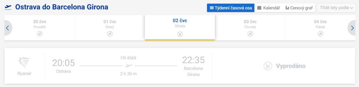 Ostrava-Girona 30.3.2025-22.10.2025 středa GRO(17:10)-OSR(19:40) OSR(20:05)-GRO(22:35) neděle GRO(5:50)-OSR(8:20) OSR(8:45)-GRO(11:15)