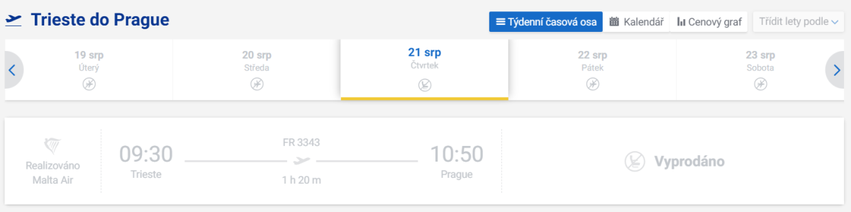 Praha-Trieste 30.3.2025-23.10.2025 čtvrtek TRS(9:30)-PRG(10:50) PRG(11:15)-TRS(12:30) neděle TRS(6:15)-PRG(7:35) PRG(8:00)-TRS(9:15)