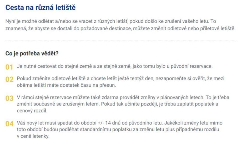 Dokazovať to nemusíš, viem že to tak funguje, sám som si nedávno menil zrušené miesto príletu na iný štát. :) Reagoval som len na to tvoje "To jsi Matěji špatně pochopil.", keďže on to pochopil presne tak, ako je to v tých pravidlách napísané.