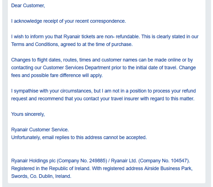 Jestli je to dokonce odpověď na některou complaint, tak to ani nikdo nečetl, jen poslal neupravený template.
