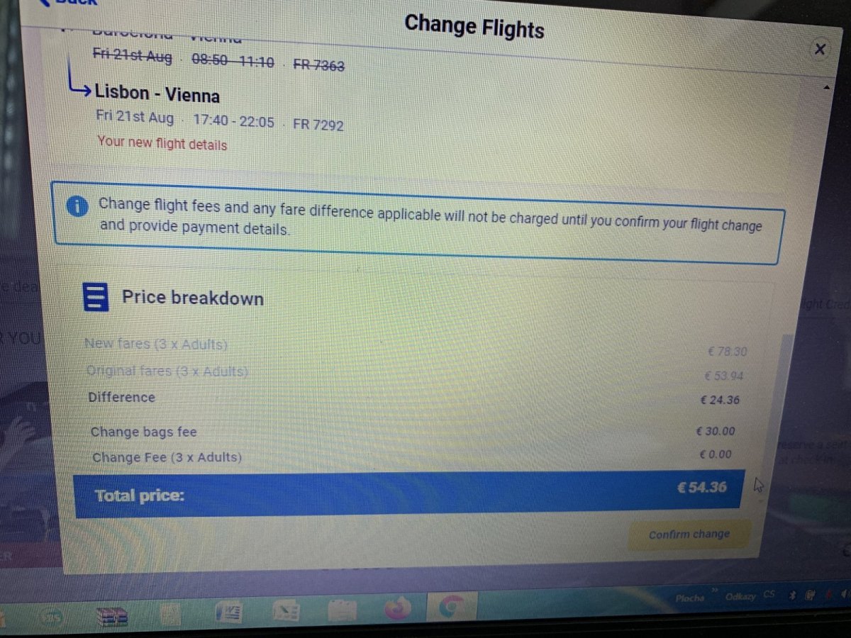 Nejde mi změnit let u Ryanairu. Chci změnit let který máme od příští soboty takže je to více než 7 dní před. Dám "změnit" a pak vybrat nový let. A tem sice vyberu termíny ale už se nerozsvítí tlačítko "pokračovat" takže nic. Setkal jste se s tím někdo?