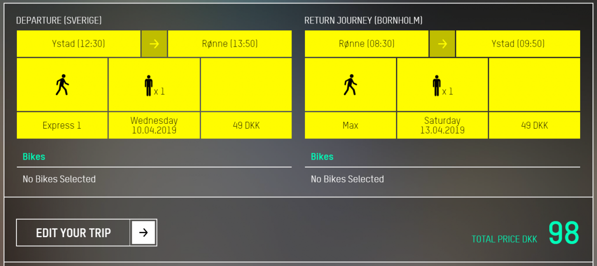 trajekt Rønne - Ystad 8:30 9:50 49 DKK / 170 Kč