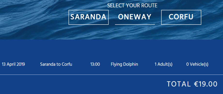 trajekt Sarande - Korfu 19 EUR / 490 Kč