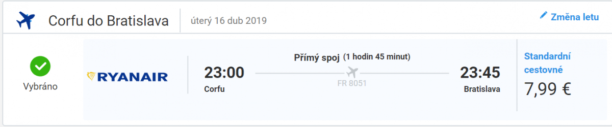 Korfu - Bratislava 8 EUR / 205 Kč