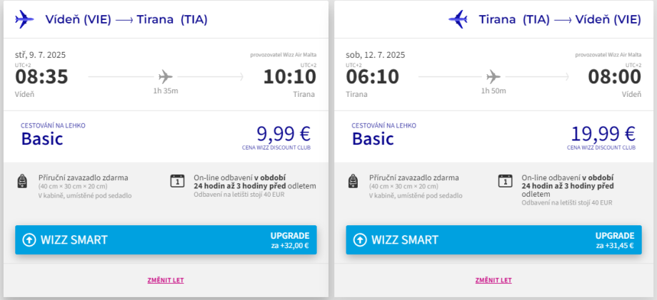 Wizzair: akční ceny letenek