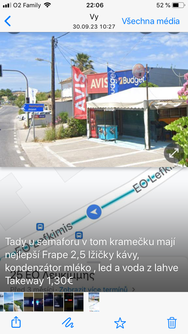 tonic před 6 lety (06. 02. 2020 11:25) Online před 2 hod Přidal se před 11 lety Napsal 7811 příspěvků Poslat zprávu Zobrazit příspěvek David Eiselt před 6 lety (06. 02. 2020 12:10) Online před hod Přidal se před 14 lety Napsal 5628 příspěvků Poslat zprávu Zobrazit příspěvek Mám dobrý tip pro ty, co přiletí na Korfu než bude noc, výborně Frape hned u letiště na konci dráhy, s sebou za 1,30€ aktuální cena , malý krámek u silnice