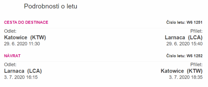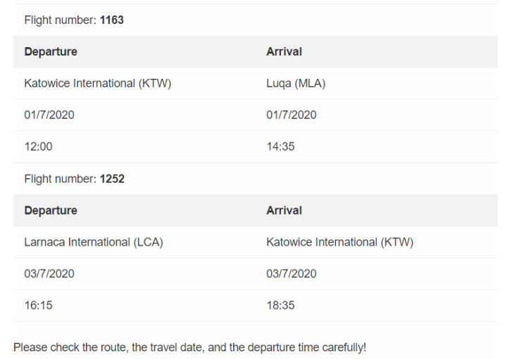 rezervaci z KTW do LCA v červnu (obr 1) mi změnili na KTW-MLA, zpět LCA-KTW ???? v červenci (obr 2)