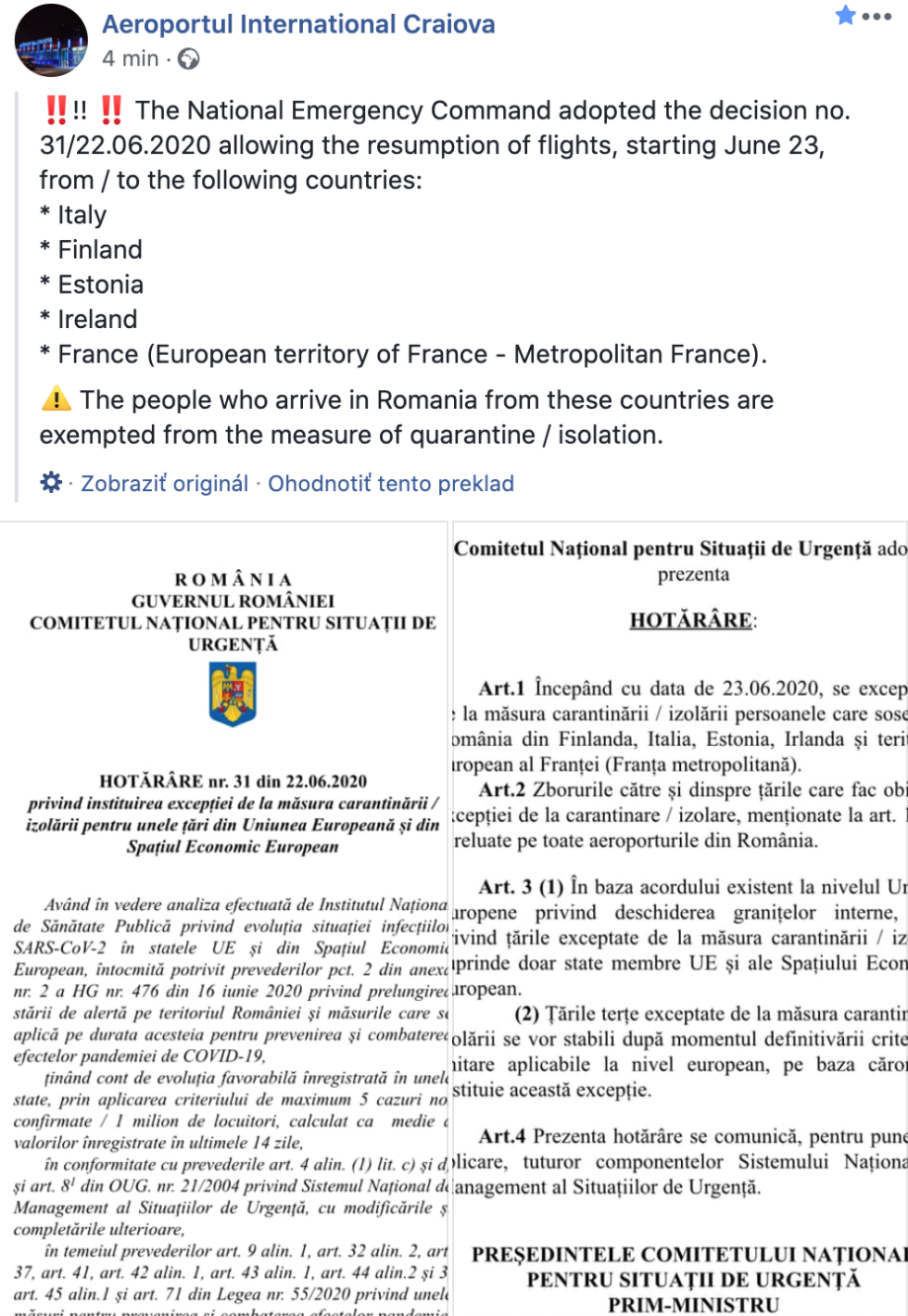 Ano 100%, uz aj NOTAM je aktualizovany https://flightplan.romatsa.ro/in...covid_lrbb
