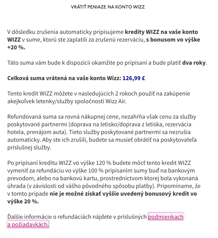 Možná tenhle bod, ale nijak neodporuje VOPu: 4.9. Should Wizz Air cancel a flight that had been paid for from a WIZZ Account, the Passenger shall receive the price of that flight as credit.