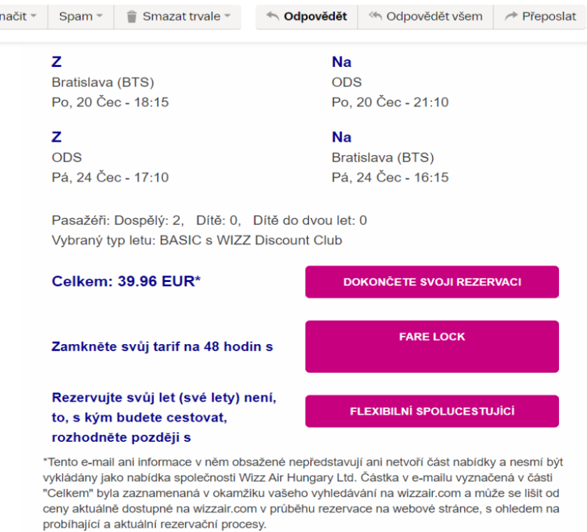 Je to pravděpodobně tím, že letím mimo hlavní sezónu a mám wizz discount club.