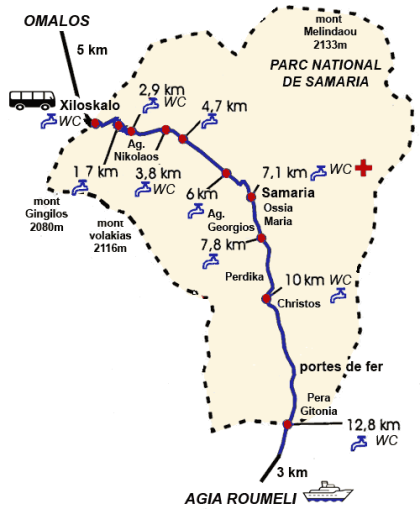 A sice v ramci jednoho dne plout trajektem z Paleochora do Hora Sfakion (okolo 20 eur) a behem nekolika hodinove pauzy v Agia Roumeli se projit x-kilometru temer celou nadhernou soutezkou Samaria vzhuru az k mistu Samaria Village neboli Samaria Settlement a nasledne opet dolu do Agia Roumeli. Odtamtud trajektem do zminovaneho Hora Sfakion a pak treba busem do Chanie nebo Rhetymna.