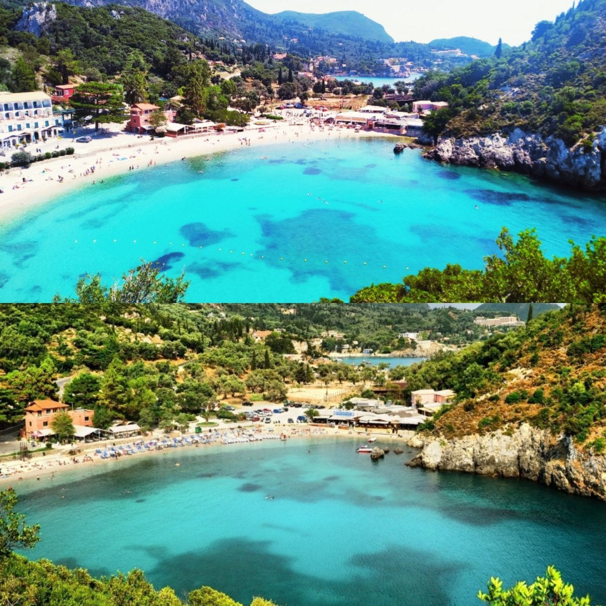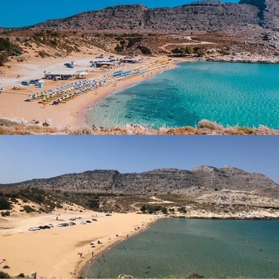 Agathi beach nahore 2018 (fotobanka) a dole 2020 (ja vcera)