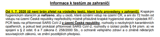 Já to našel na webu pro JHM, že to od 1.7. neuznávají a testy v zahraničí neberou zřetel. Tak že by to bylo kraj od kraje?