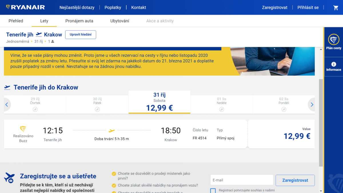 Od listopadu je Krakow - Tenerife za 1400 i primy let.
