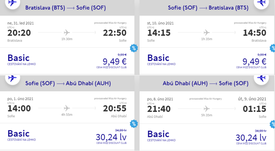 [W6] Bratislava - Abú Dhabí přes Sofii 1.420 Kč