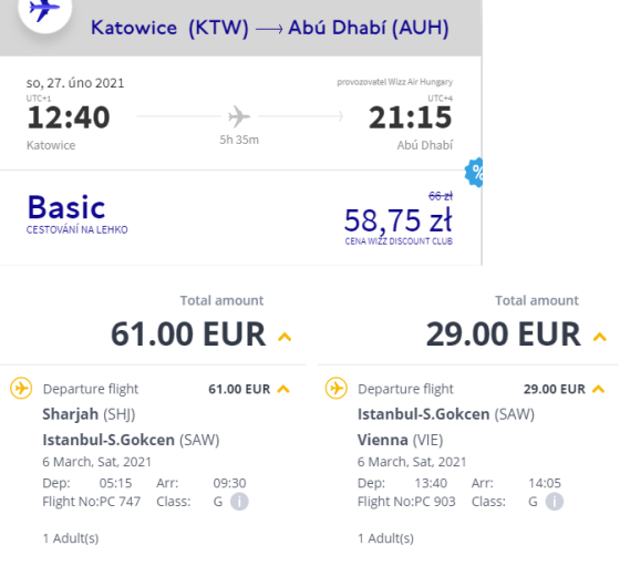 Skládačka do SAE, na zpáteční cestě možné pobýt déle v Istanbulu. Letenky od Pegasusu lze změnit bez poplatku až do 31. 3. 2021, doplácí se jen cenový rozdíl. Z dřívějších zkušeností mám pocit, že lze změnit i destinaci. Takže největší riziko představuje nejlevnější segment ;-)