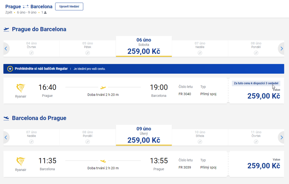 - [FR] Praha - Barcelona 518 Kč RT
