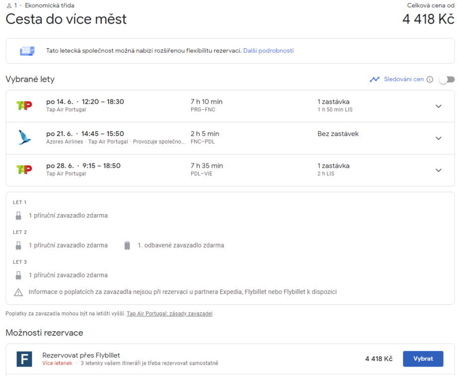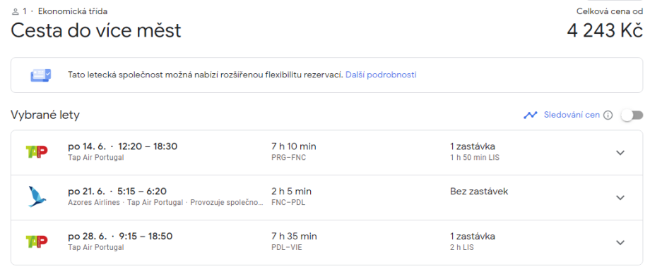 - [TP+S4] Praha - Funchal - Ponta Delgada - Vídeň 4.418 Kč
