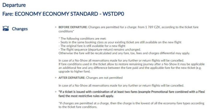 Změna letenky je možná za poplatek 1789 Kč.