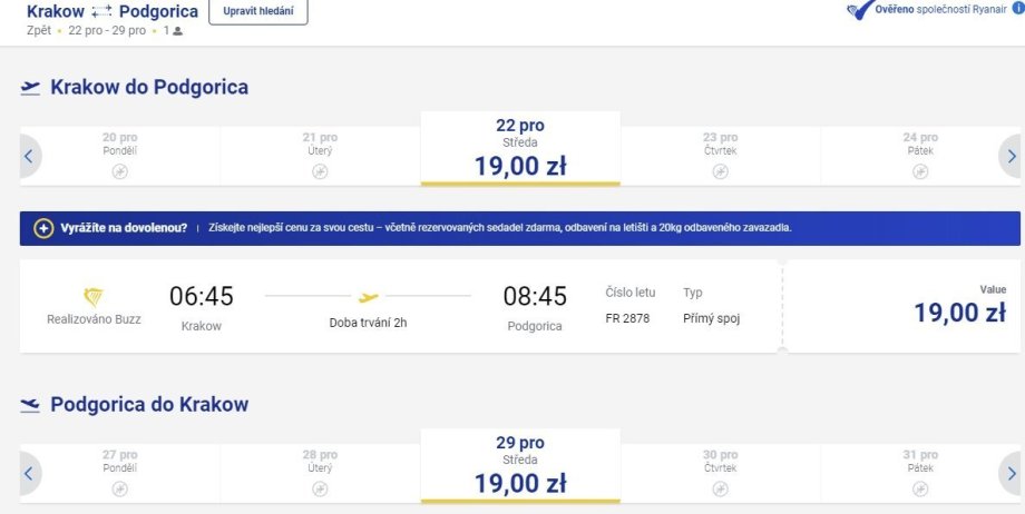 při projíždění letenek přes Vánoce jsem narazil na velice levné letenky z Krakowa do Podgorici. Termíny např. 22.12-29.12 za 38 zlotých, termínů je tam ovšem víc :)