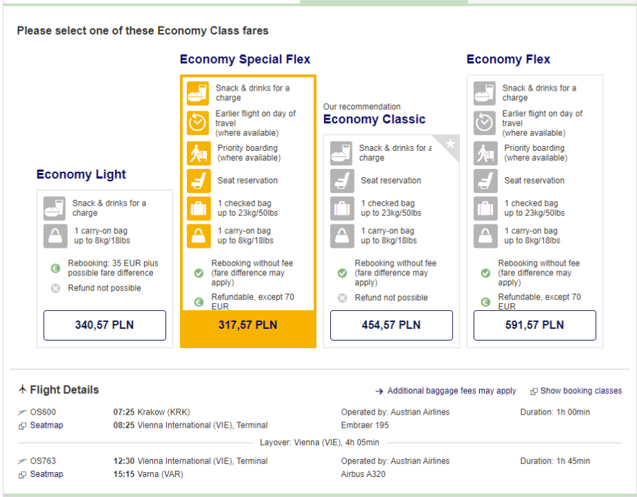Aktuálně běží promo u LH Group, tzn. LH, LX, OS na Economy Flex tarif. Jedná se o tarify KEUFLXK8/KEUFLXS8, kdy RBD je K, pokud byste hledali na matrix.itasoftware.com. Benefity viz screen.