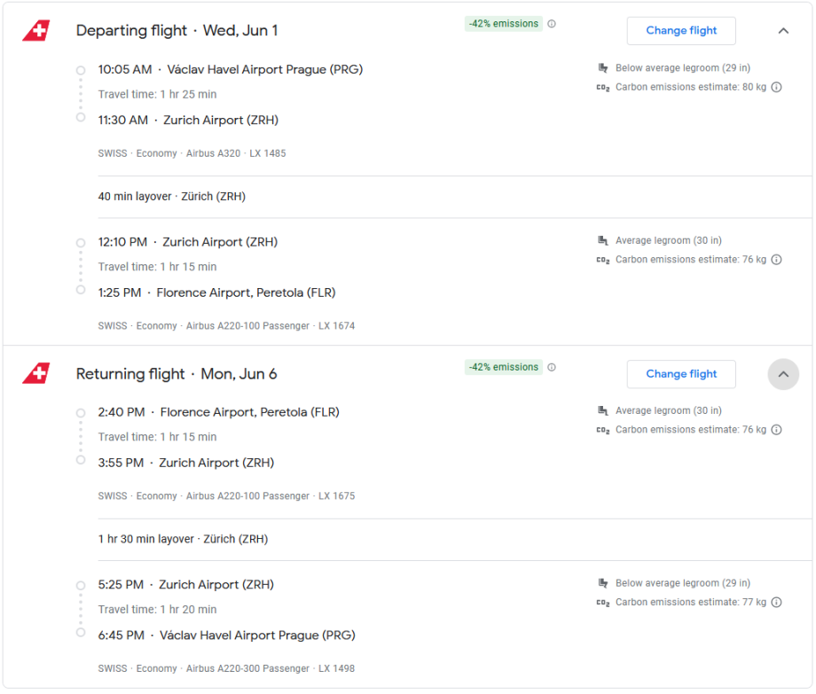 Ahoj, snažím se ulovit letenky PRG - FLR (alternativně i PSA) na termín 1-6. 6. Koukal jsem že by měl létat Vueling přímo, ale takové lety jsem vůbec nanešel. Všechno ostatní 4800+ Kč.
