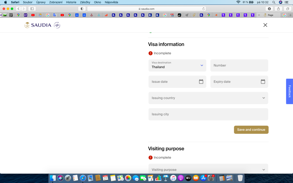 Kdo dělal web checkin u Saudie při letu do BKK, co jste zadávali do visa information...........