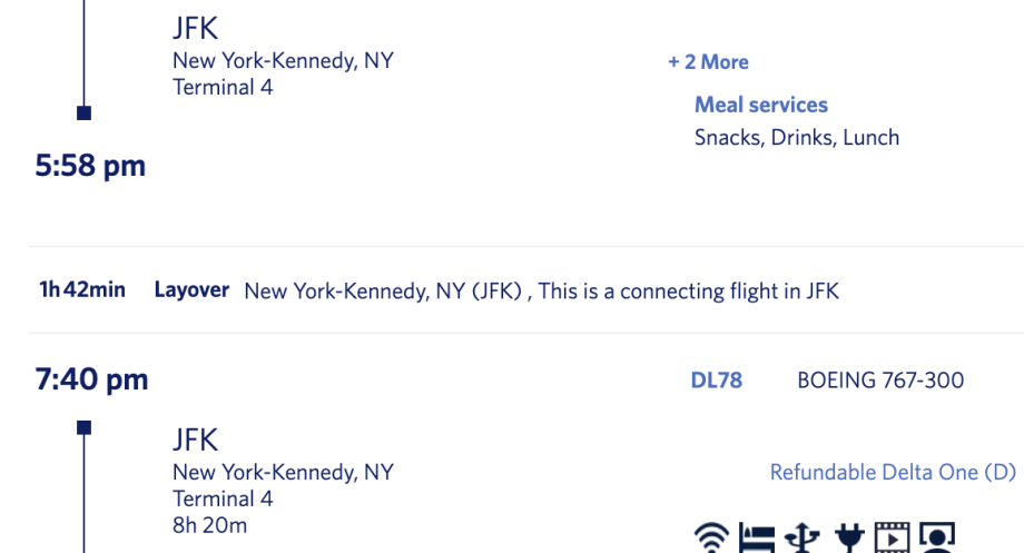 Když jsem naposled přestupoval Delta-Delta na JFK, byly na přestup 2 hodiny. Za tu dobu se tak akorát stihlo imigrační, přeodbavit kufr, kafe ve starbucks na přiletech, a pomalou chůzí na T2, odkud tehdy delta jeste také létala, a boarding akorát začal.