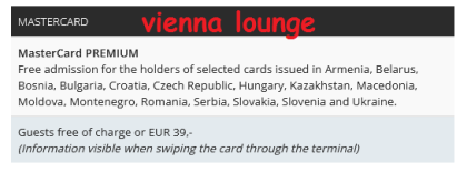 My tam byli před pár dny, máme kk Mastercard World od Raiffeisenbank a ve Vienna lounge nám projeli kartu a zamítli vstup zdarma.