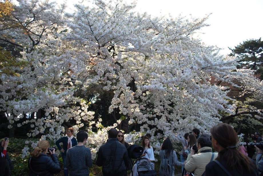 Shodli jsme se seženou, že kvetoucí sakury mj. i v Shinjuku Gyoen byly asi nejzbytečnější věc, co se dá třeba v Tokyu vidět. Navíc tam zrovna kvetly jen ty bílé yoshino. A to také jsem volil termín návštěvy kvůli nim.