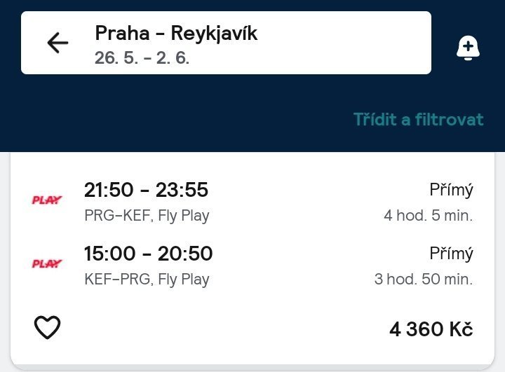 Lze už zakoupit přímé lety FlyPLAY na Island (KEF) v 05/24 a 06/24 od 4.013,-CZK (např. termín 16.5.-30.5.). Na 7 dní pak od 4.380,-CZK (na webu PLAY)