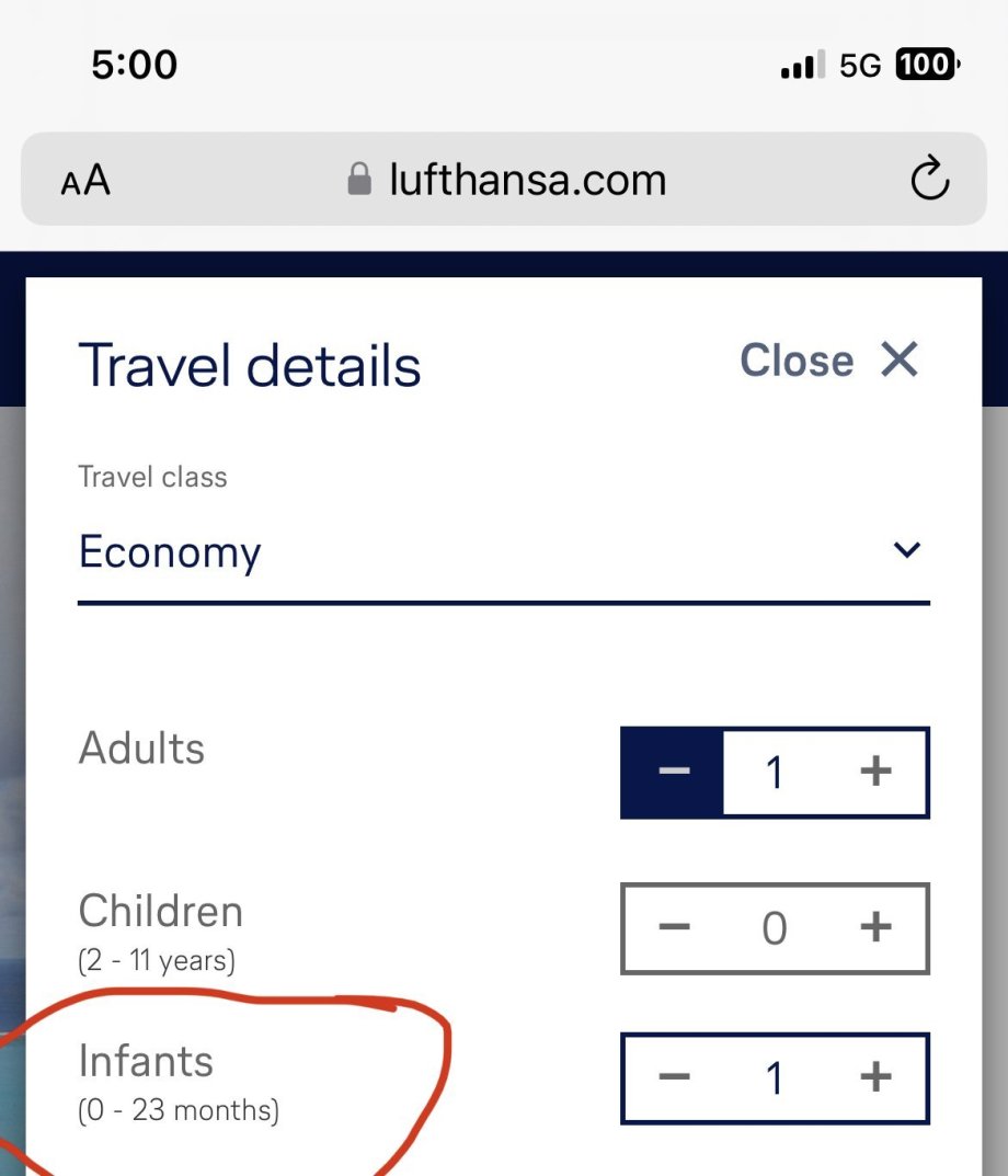 Jestli se dotaz týká ceny letenek, tak je velký rozdíl mezi infantem na sedačce a infantem na klíně. Infant na klíně (to je bez vlastního sedadla) bývá za cca 10% ceny dospělého. Zejména u dálkových letů je ale třeba zvážit faktor pohodlí (jak pro dítě tak pro dospělého).