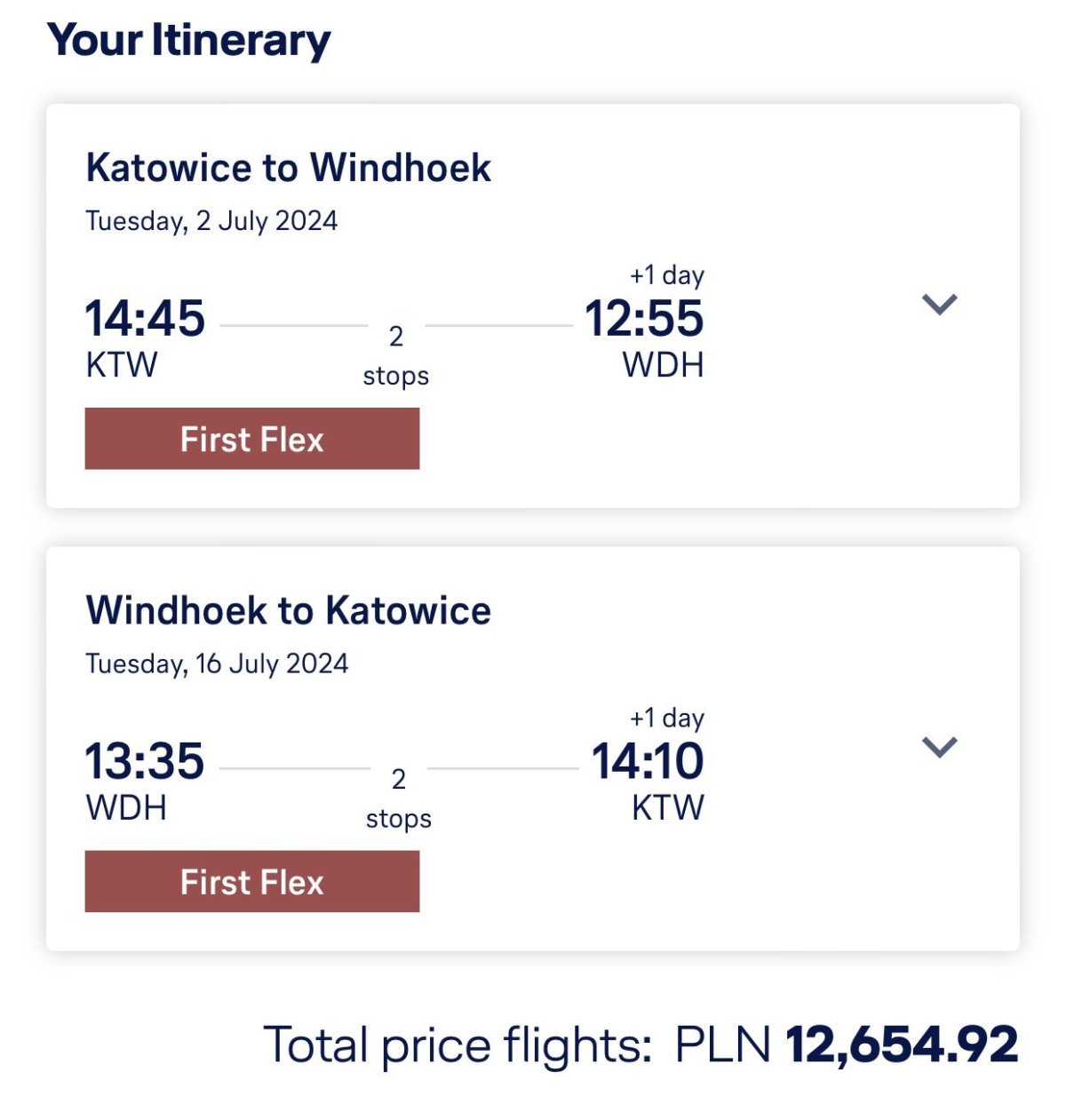KTW-FRA J, FRA-JNB A, JNB-WDH J