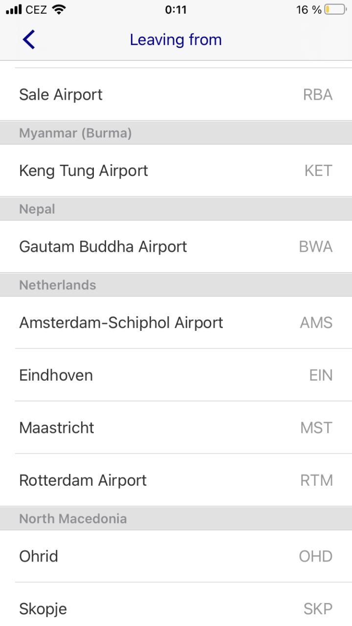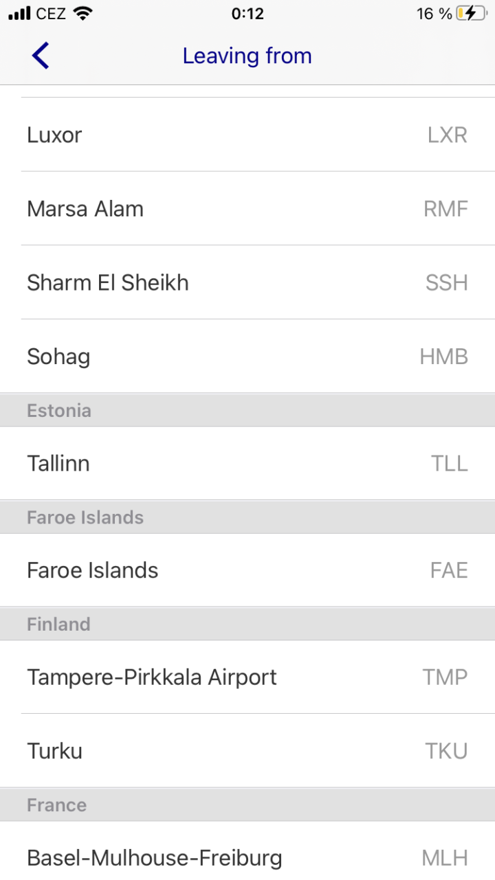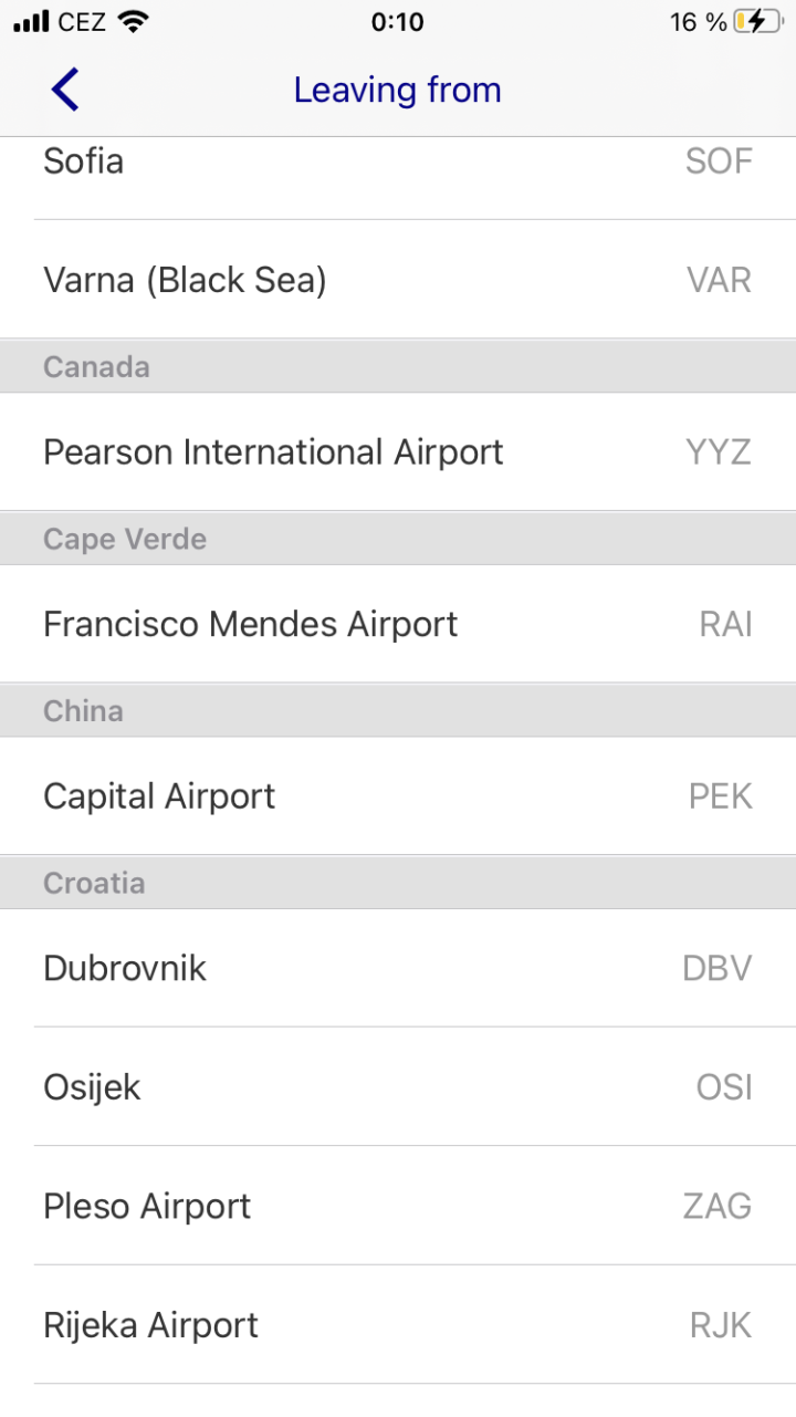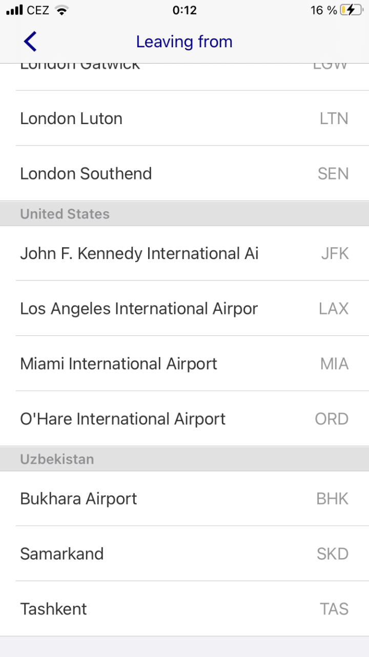 Koukam do appky, cesta je book flights a pak vyber destinaci.