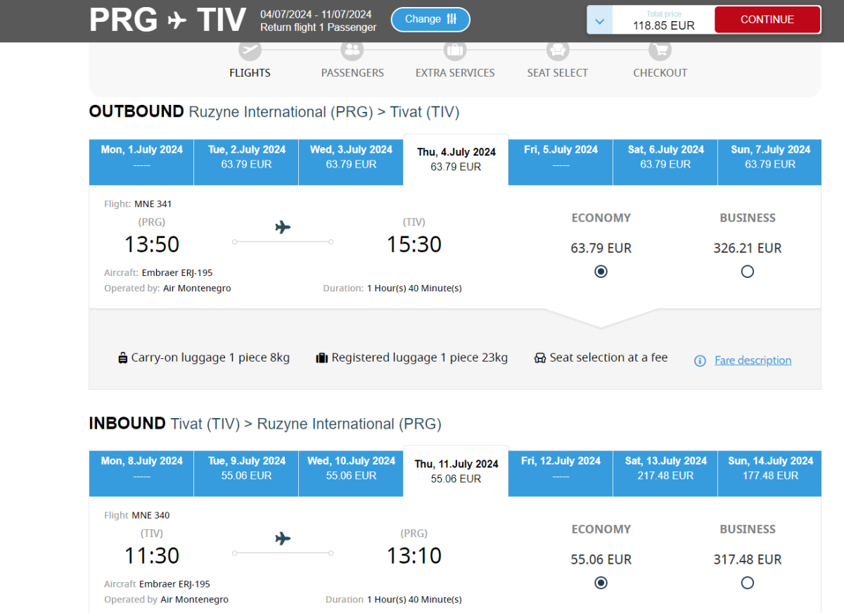 Air Montenegro nabízí i na červenec/srpen přímé lety Praha/Brno - Tivat za 119 EUR, v ceně i odbavený kufr do 23 kg. Lze letět i z Ostravy do Podgorice za stejné peníze.