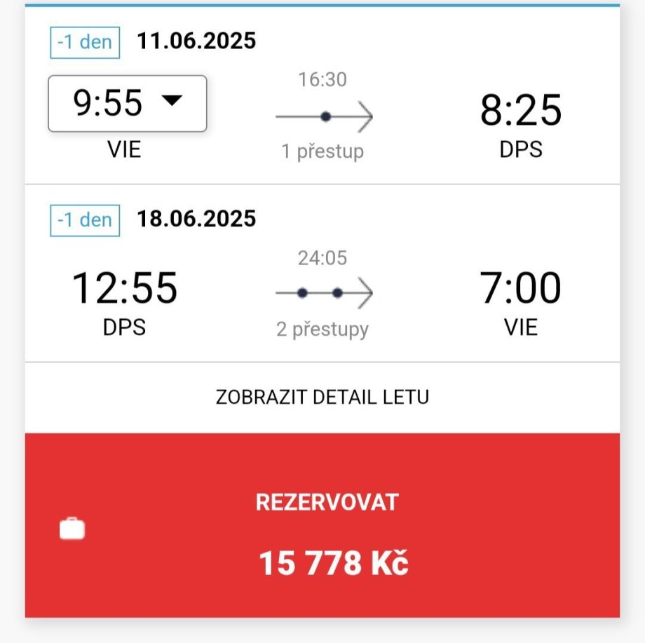 Cena skvělá, termínů je ale poměrně málo. Samozřejmě jsou i delší, než na týdenní pobyt. Výhodou je taky krátký přestup v Kuvajtu a to jen 2 hodiny.