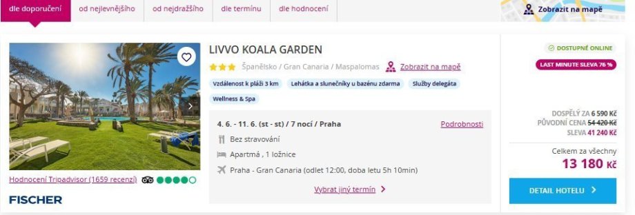 David Eiselt před 6 měs (31. 05. 2025 07:36) Online před 4 hod Přidal se před 14 lety Napsal 5626 příspěvků Poslat zprávu Zobrazit příspěvek Last minute Gran Canaria 6.590 Kč /na týden/bez stravy