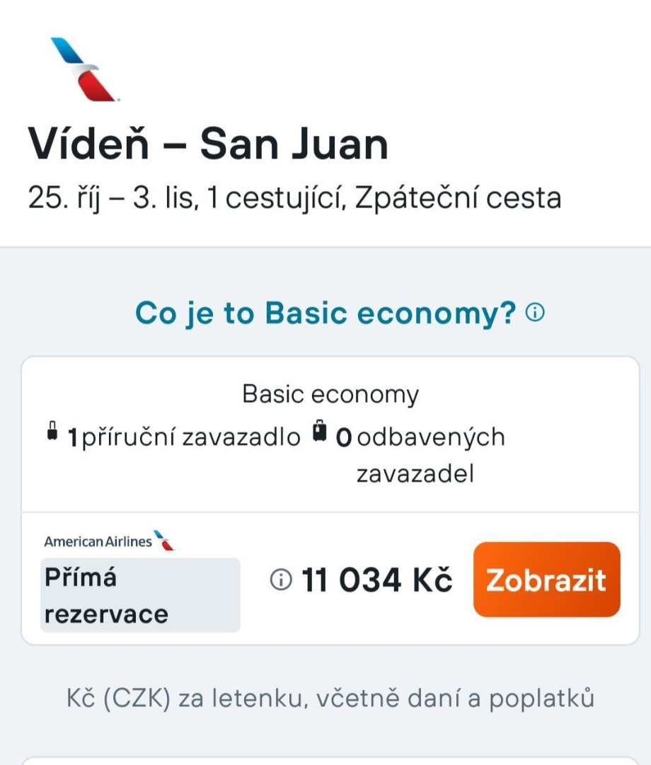 Michal Jakubík před 5 měs (05. 07. 2025 11:31) Online před 7 hod Přidal se před 3 lety Napsal 217 příspěvků Poslat zprávu Zobrazit příspěvek Z Vídně na Portoriko na podzim za 11 tis., za podobné prachy i US Virgin Islands, Cancún nebo Miami. Za cca 15 tis. tam jsou i Vánoce.