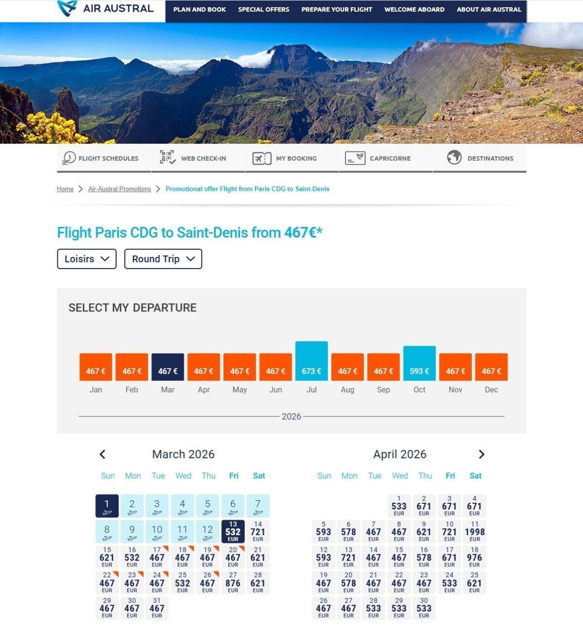 Reunion z Paříže v akci až do prosince za cca 450€ teď mají snad všichni, co tam lítají. Já tam nejradši lítám s Air Austral z CDG. Některé lety lítá 787 - trochu menší dobytčák než ty ostatní.