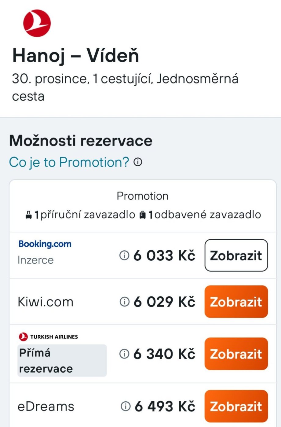 Kdyby se to někomu hodilo do skládačky, tak Turci mají za pěknou cenu po Vánocích lety z Hanoje do Vídně.