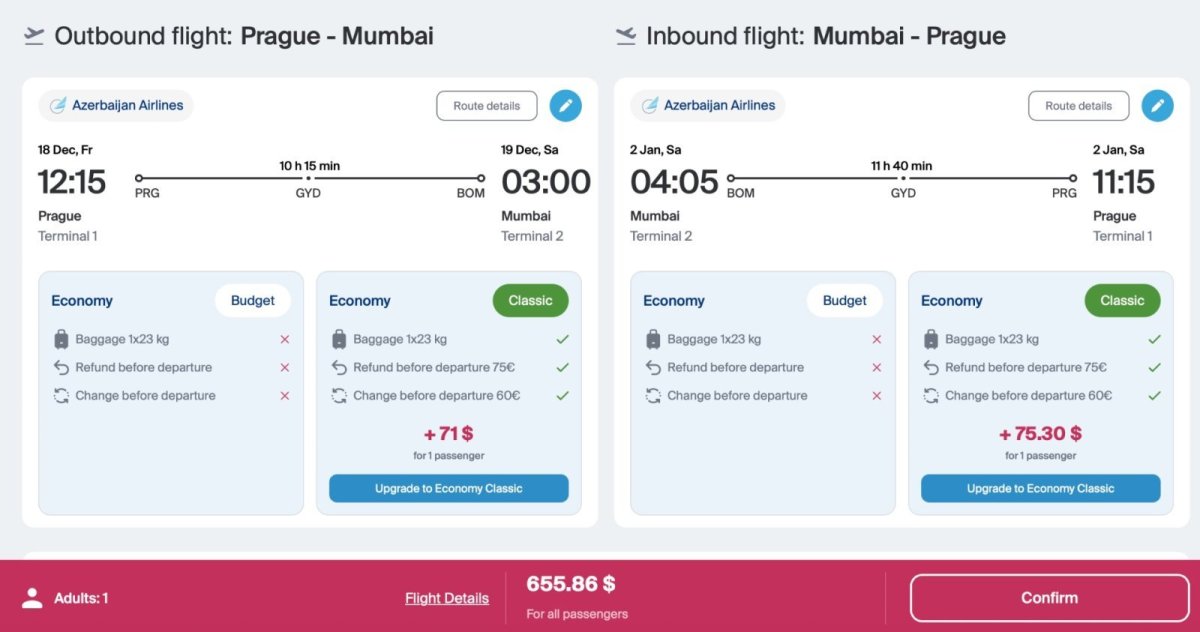 Na příští vánoční svátky doporučuji fajn letenku od J2 z Prahy do Bombaje za suprovních 13.875 Kč. V ceně dva příručáky a jídlo na palubě. Dillí je za o něco nižší cenu, ale Bombaj nabízí výhodnější letenky pro přípoje do Goa nebo Kéraly.