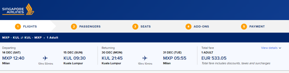 Milan  - Kuala Lumpur   na termín 14.12-30.12 za 530 EUR.