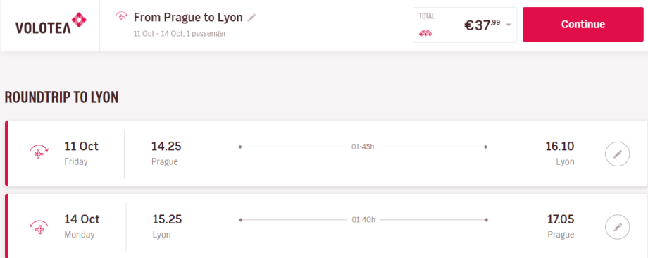 A Praha - Lyon na prodloužený víkend 11-14. října za 38,- eur vypadá dost zajímavě.
