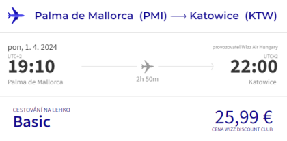 - [W7+FR] Katovice - Barcelona - Mallorca - Katovice 2.560 Kč