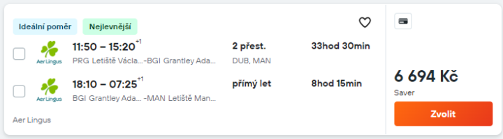 [EI] Praha - Barbados - Manchester 6.694 Kč