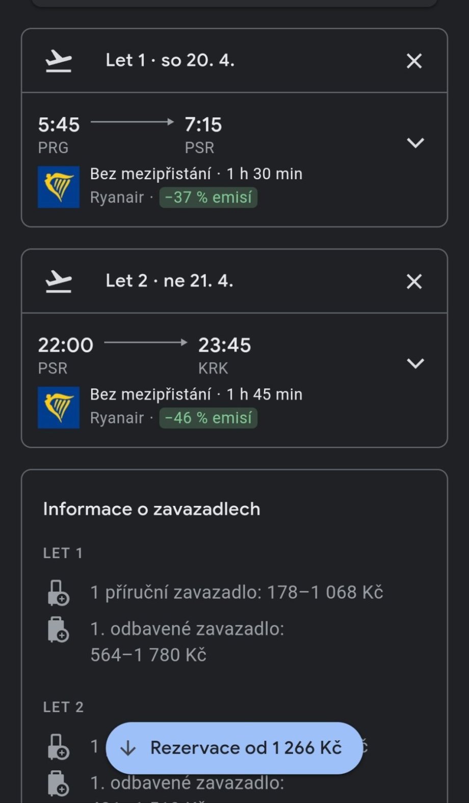 Ahoj. Poptávám letenky na nadcházející víkend. V ČR bude počasí deštivé a tak je podmínka aby v cílové destinaci bylo lepší počasí. Termín 19.4.-21.4. odlet Katowice nebo Krakow. Někam po Evropě lejlépe. Levně. Jestli máte někdo tip tak sem s ním. Díky moc .