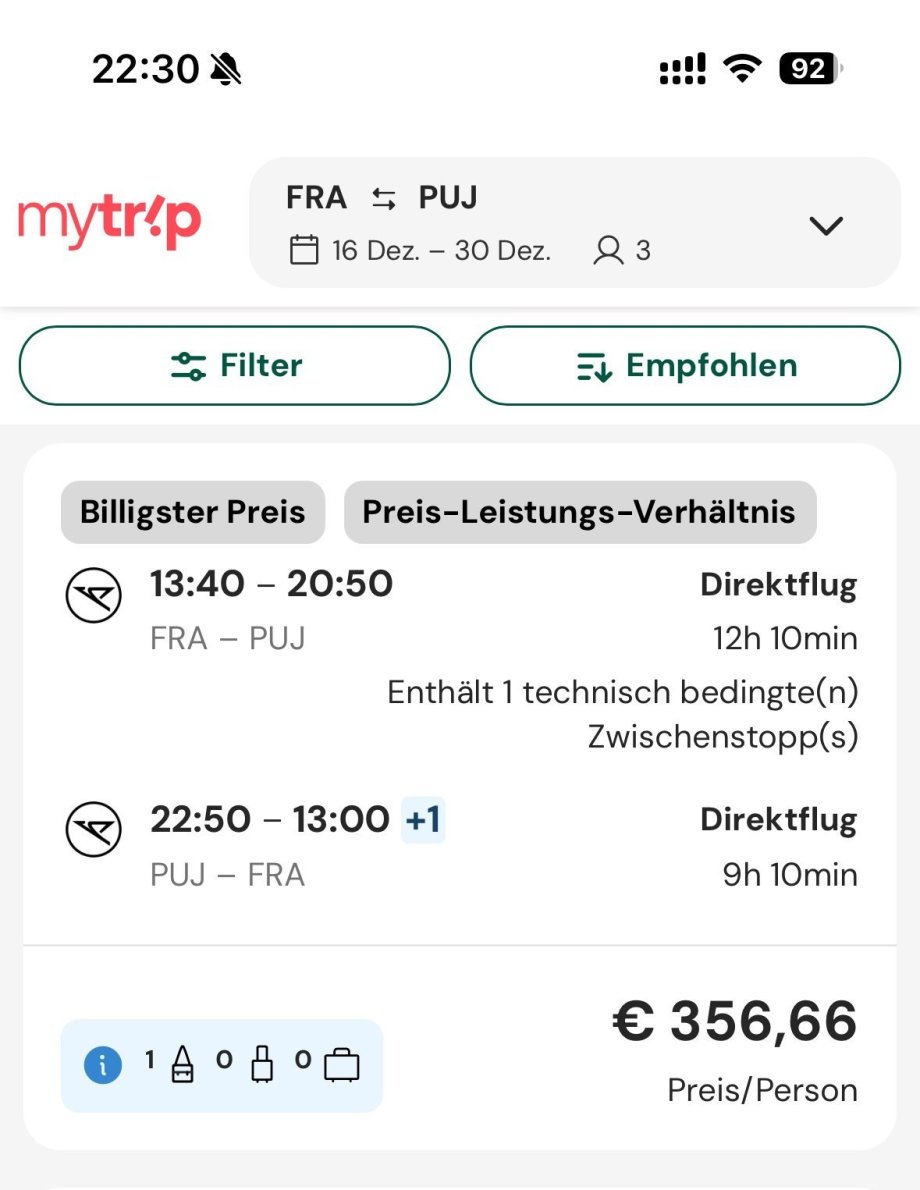 Error fare s Condorom, Frankfurt - Punta Cana za cca 300€ cez rôzne OTA (napr mytrip). Terminy aj na Veľkú Noc a Vianoce.