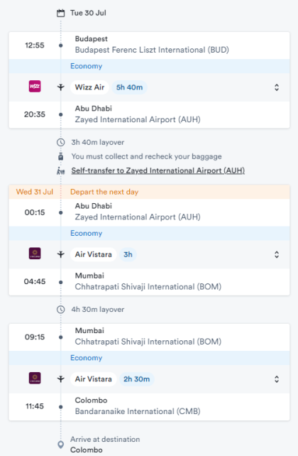- BUD - AUH (Wizz), AUH-BOM-CMB (Air Vistara)