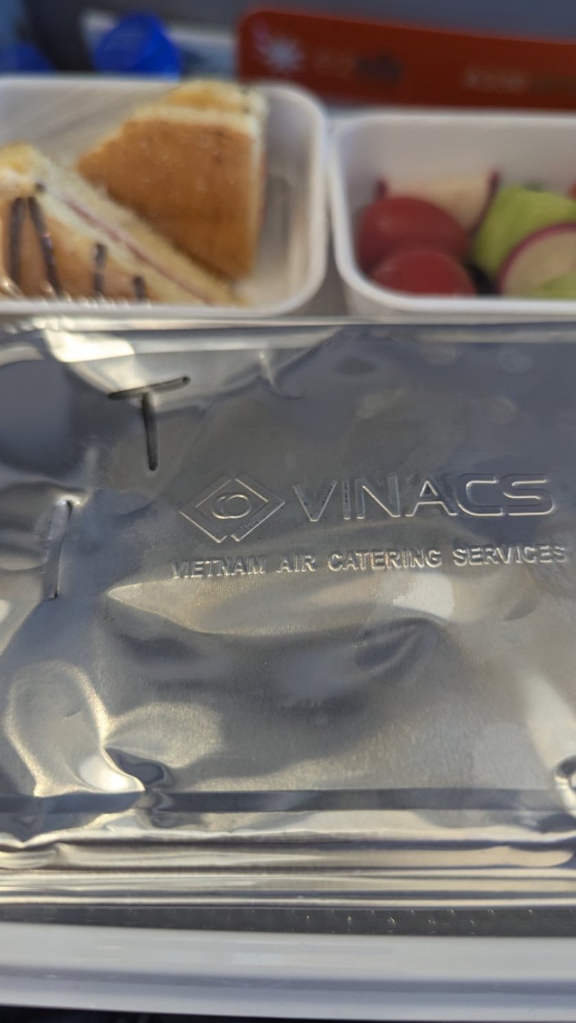 • je to fullservice z pohledu jidla - tzn 2x sety jidla behem 8h letu. Kvalita tak 5/10, neco z toho se dalo. K piti soft drinks, caj/kafe, vino. Na jednom letu jsem mel box s nazvem Vietnam airlines, velmi zvlastni