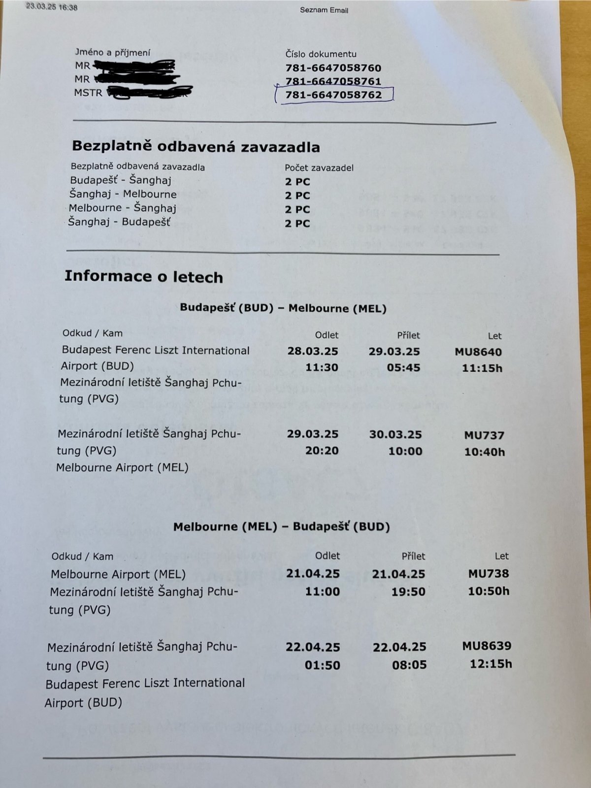 Samozřejmě po objednání i zaplacení letenek přišlo potvrzení o vystavení el. letenek, kdy každému z nás bylo přiděleno konkrétní číslo letenky. Takze nákup proběhl ze všech stran v pohode.
